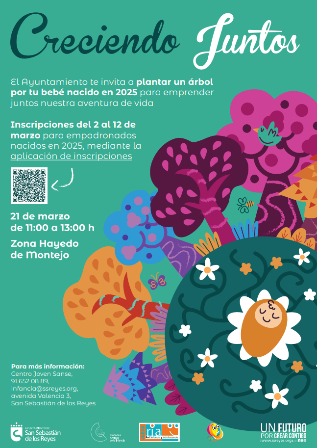 El Ayuntamiento de San Sebastián de los Reyes invita a las familias con bebés nacidos en 2025 a participar en Creciendo Juntos, una iniciativa para plantar un árbol y celebrar el inicio de la nueva etapa.
