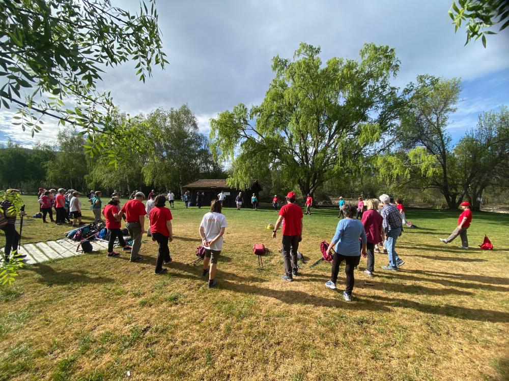 Psicomotricidad al aire libre, práctica de ejercicios en el punto activo para mejorar la condición física de cada usuario favoreciendo las relaciones sociales.