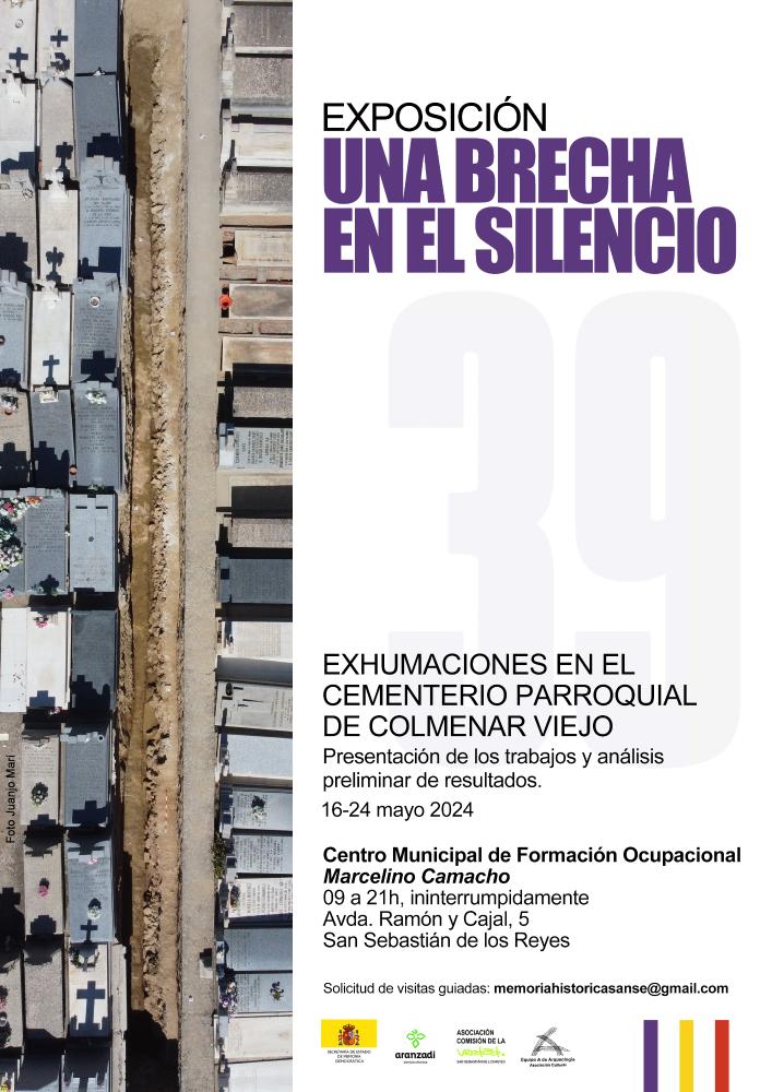 A lo largo de los dos últimos veranos se han realizado sendas campañas para exhumar los restos de 107 hombres y una mujer que fueron fusilados en las tapias del cementerio parroquial de Colmenar Viejo. Entre ellos se encuentran 25 vecinos de San Sebastián de los Reyes. Los trabajos han sido realizados por la Sociedad de Ciencias Aranzadi, con financiación de la Secretaría de Estado de Memoria Democrática al Ayuntamiento de San Sebastián de los Reyes, líder de la Agrupación de 7 pueblos de la zona Norte de Madrid con fusilados en Colmenar. La exposición recoge imágenes de los trabajos realizados en cuatro paneles y se podrán ver objetos restaurados encontrados en las fosas. Estos objetos forman parte de la biografía de las personas que los tenía, dan pistas sobre su estatus, su oficio, su identidad...son auténticos depósitos de memoria. La inauguración coincidirá con un jueves de la Memoria en el que la responsable de los trabajos, la antropóloga forense Almudena García-Rubio, contará los resultados de los trabajos realizados así como el estado actual del proyecto (análisis antropológico y genético para la identificación de los restos).