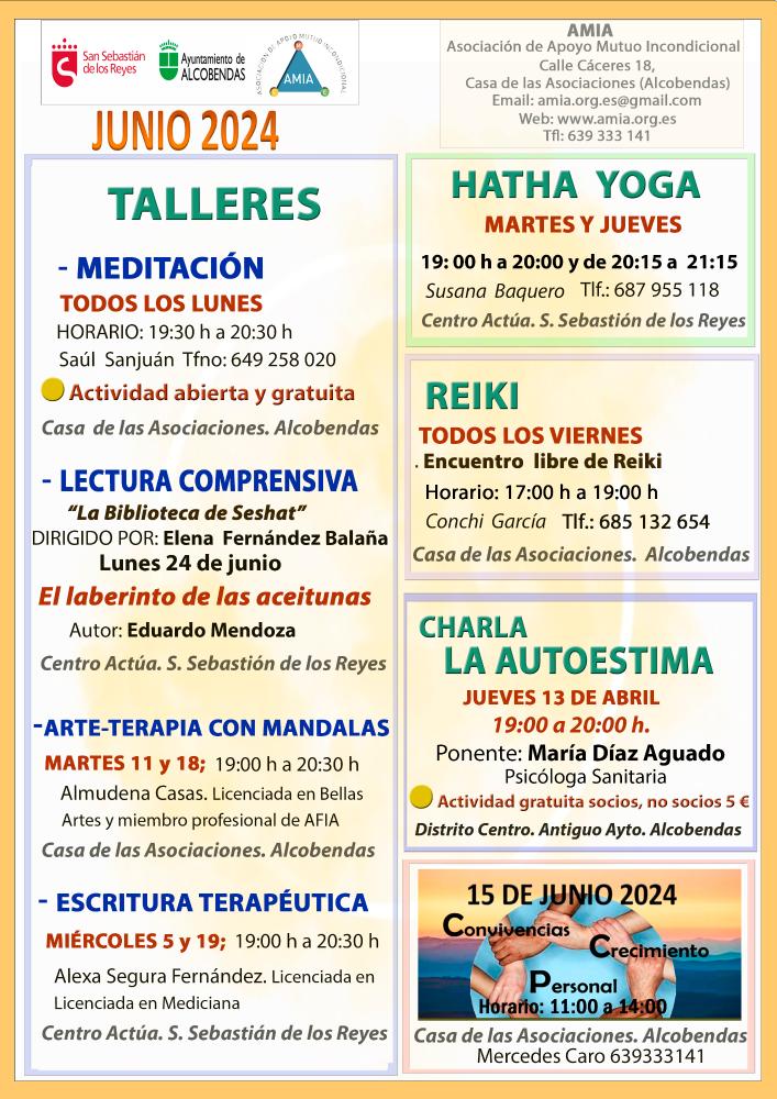 Todas las actividades se realizan en el Centro Actúa de San Sebastián de los Reyes y el la Casa de las Asociaciones de Alcobendas.