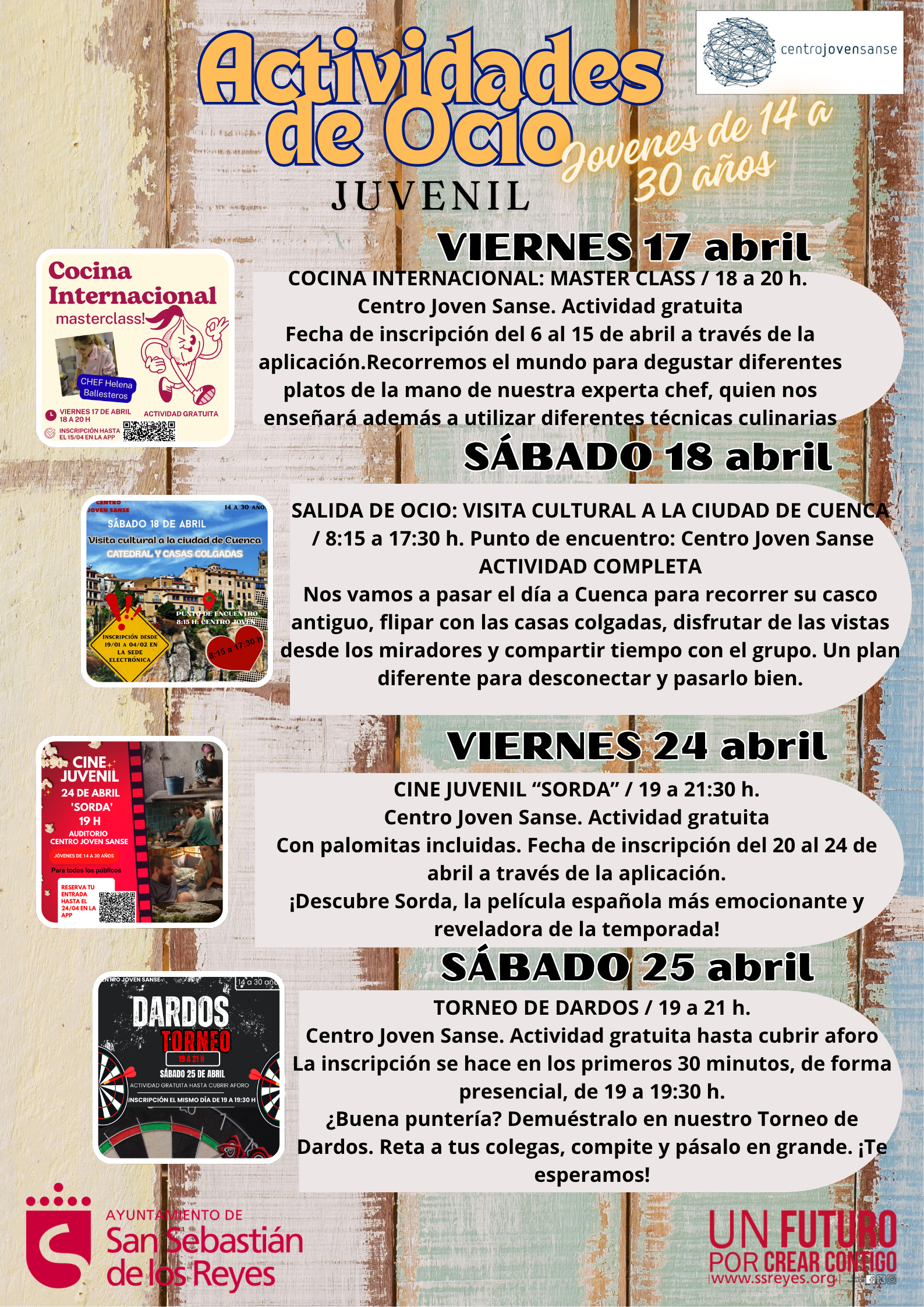 Las actividades están dirigidas a jóvenes entre 14 y 30 años. Las actividades serán gratuitas
