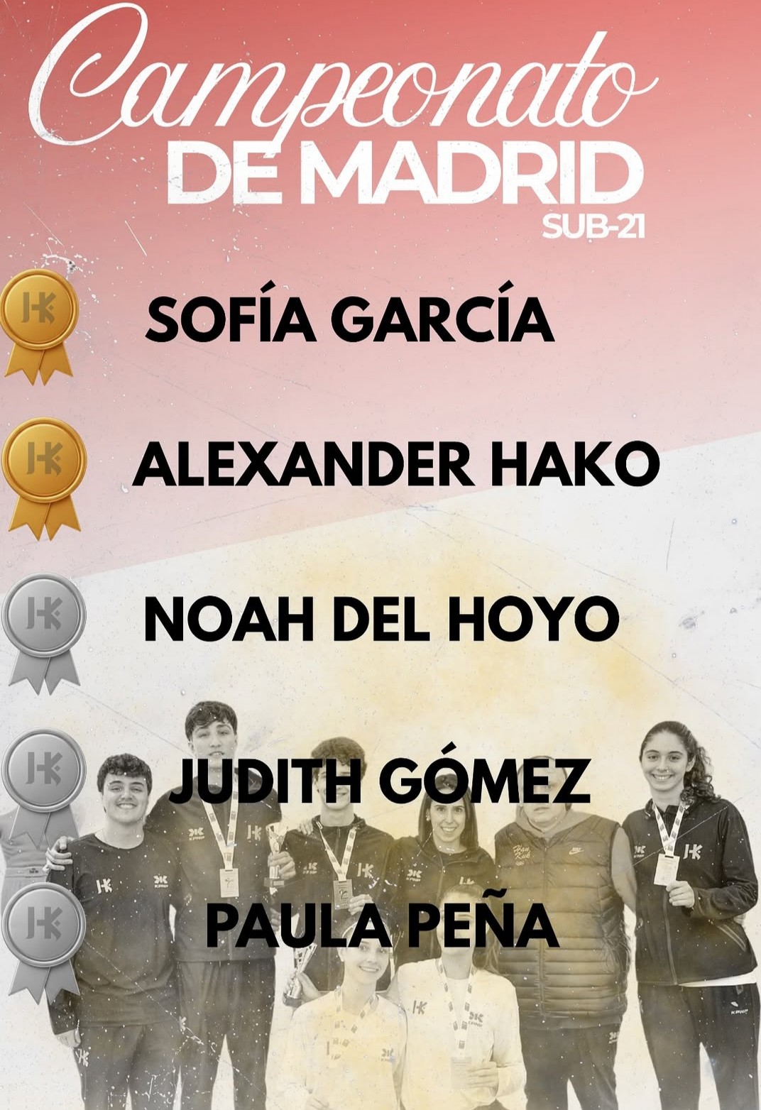 El Hankuk International School ha firmado una gran actuación durante el Campeonato de Madrid SUB-21. Sofía García y Alexander Hako obtuvieron la medalla de oro y Noah del Hoyo, Judith Gómez y Paula Peña, la de plata.